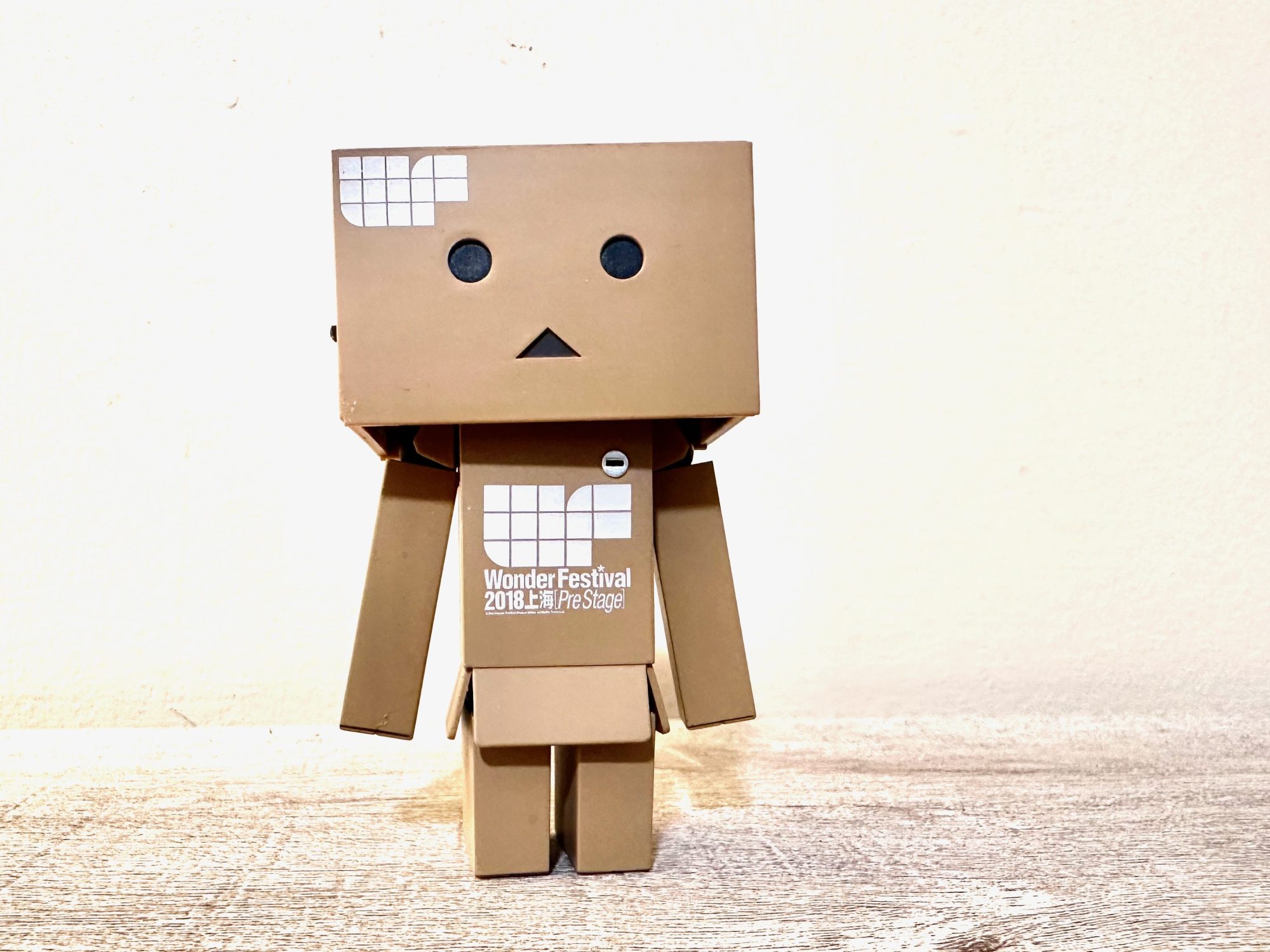 The 2018 Shanghai Wonder Festival had two pre-stage versions. This one came in the standard Danbo box and features the Wonder festival logo on the stomach of the figure. I am still chasing this one for my collection.