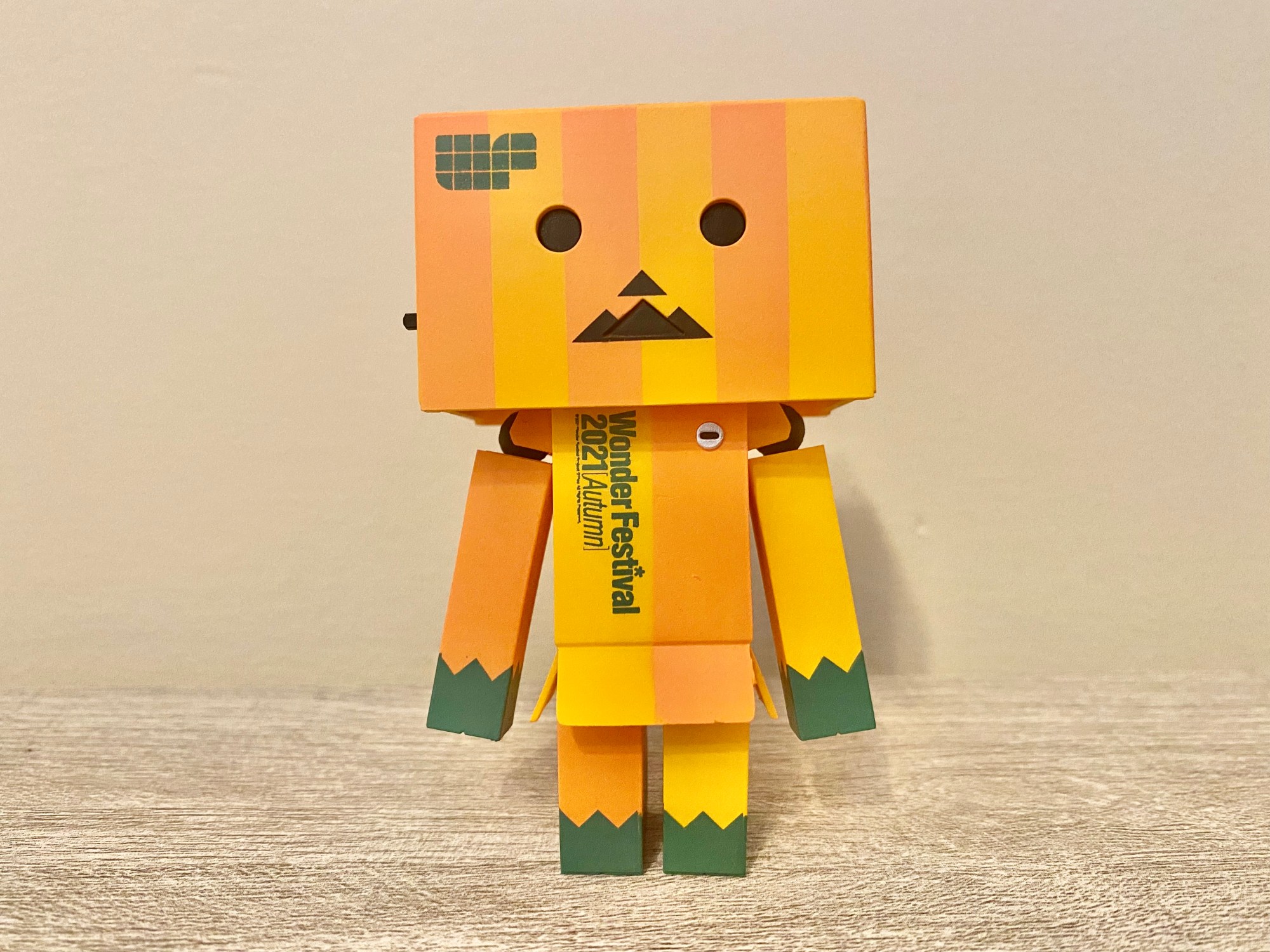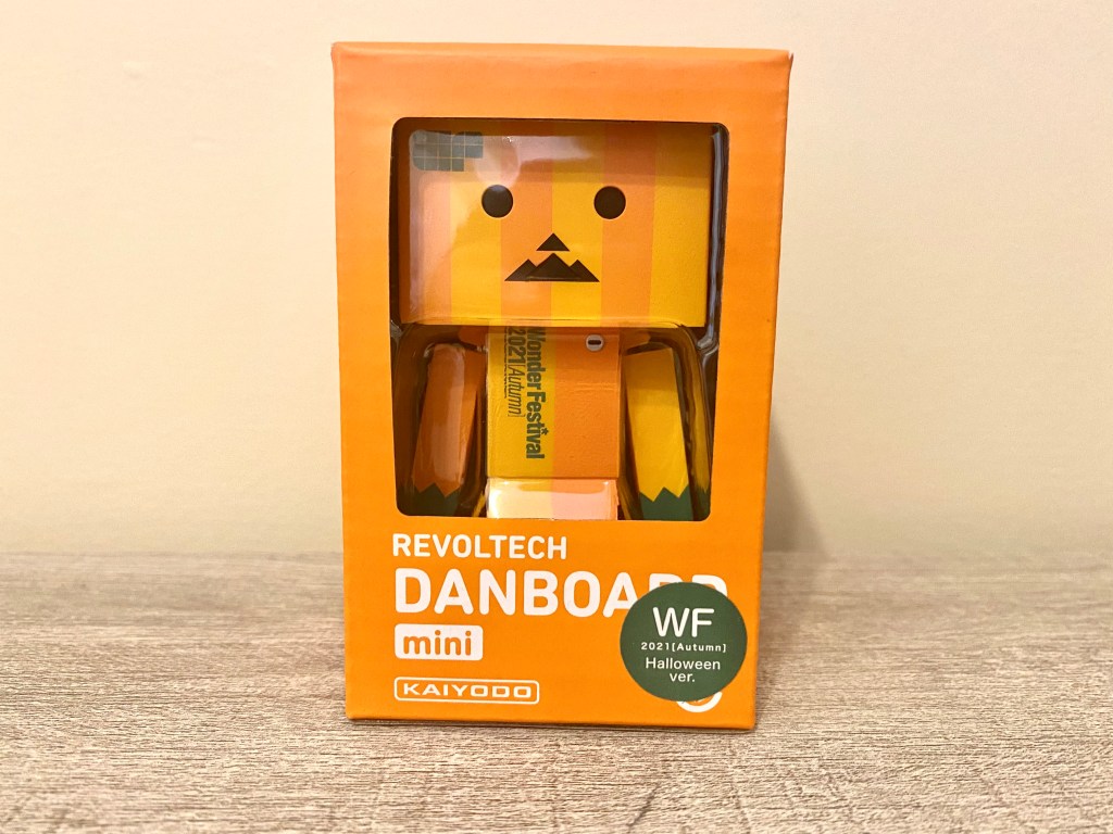 The 2021 Wonder Festival (Autumn) Halloween Version has Danbo dressed up as a Jack-o’-lantern! It has a striped orange pattern representing a pumpkin and a unique mouth.
