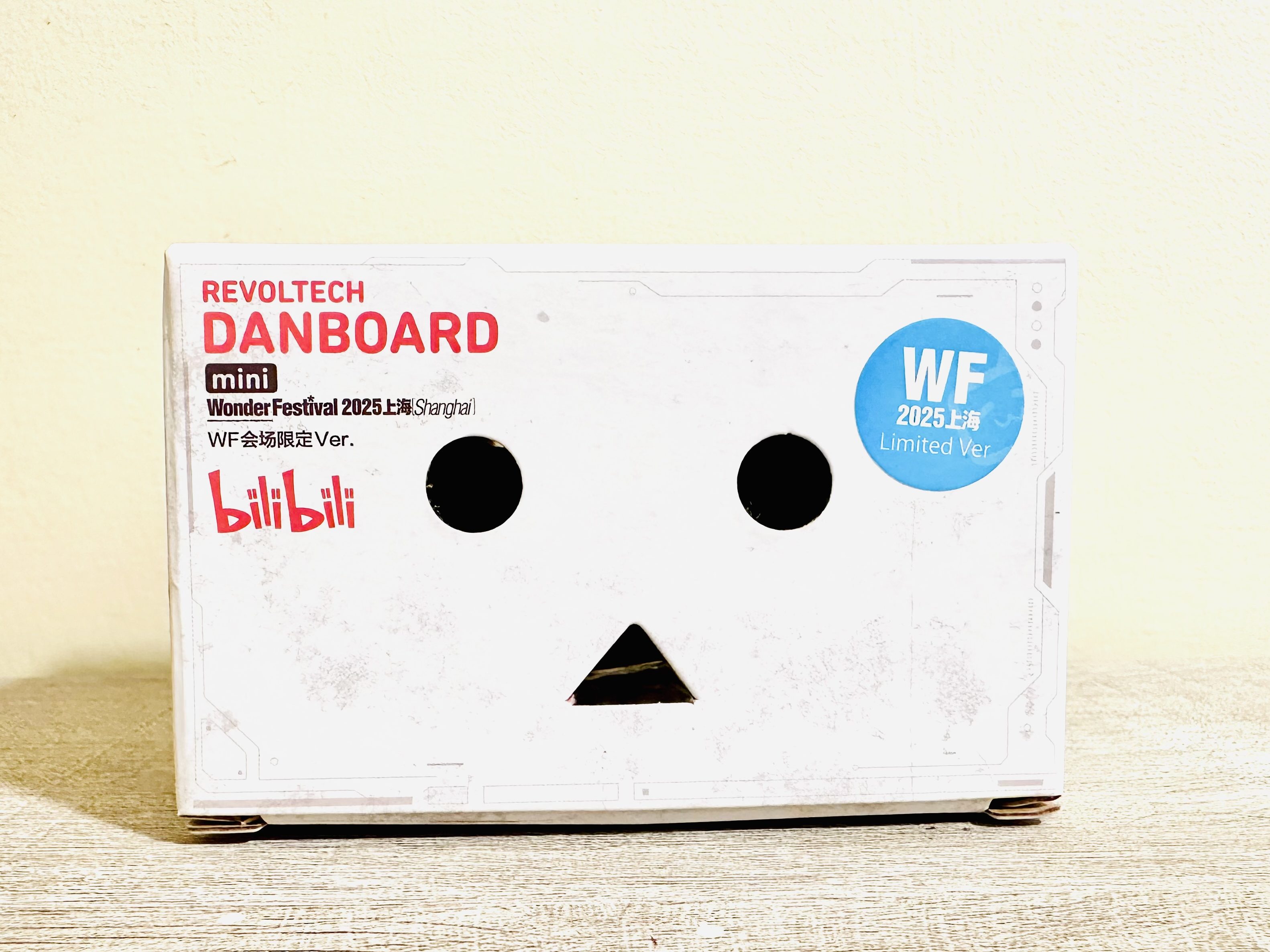 The 2025 Shanghai Wonder Festival released a new bilibili version of Danboard. Bilibili, is a Chinese video-sharing website based in Shanghai where users can submit, view, and add overlaid commentary on videos. The figure feature Danboard dressed like a robot with on controller and on buttons, is white and pink, grey and black detailing.